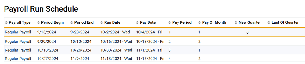 Navigate to the Payroll Run Schedule > Review Payroll Schedule