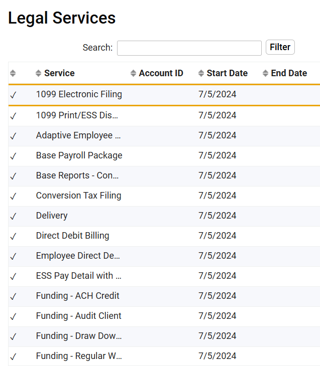 Audit billing to ensure all billing items match quote. Including One-time Tax Set up Fees Etc. Additional billing items can be added now for future start dates. HRB does start billing until services are built and ready for client use. HR Complete and ACA are the exception.