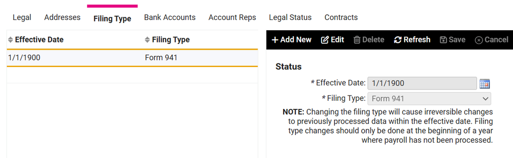 Verify that the dates set up on this screen are accurate based on the clients pay period dates and check dates.